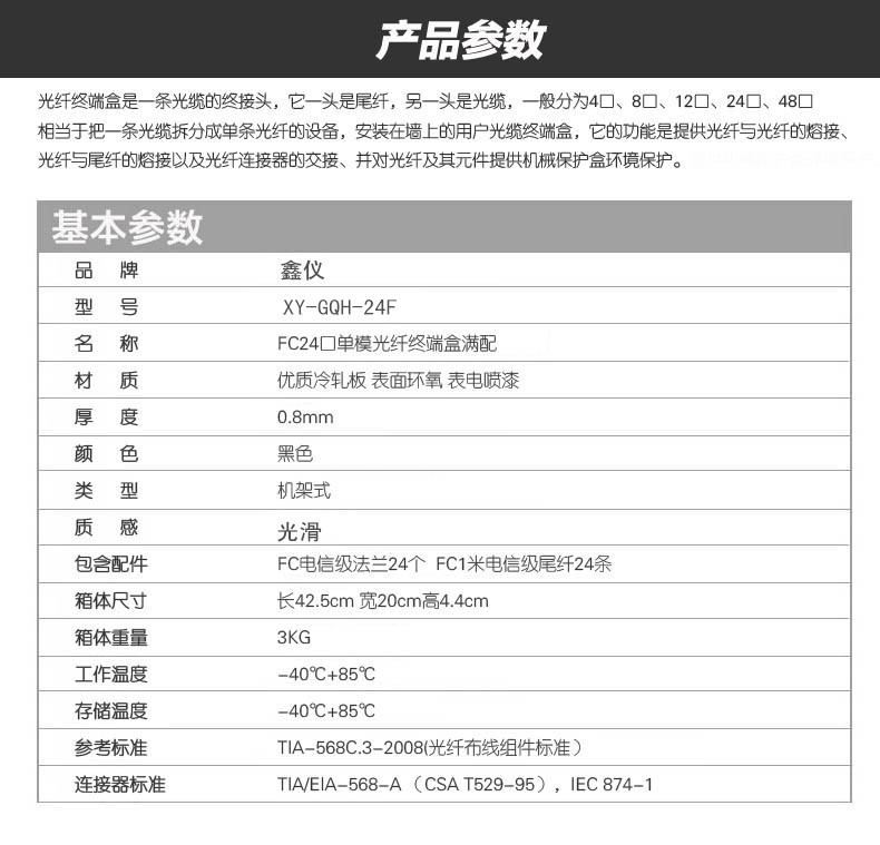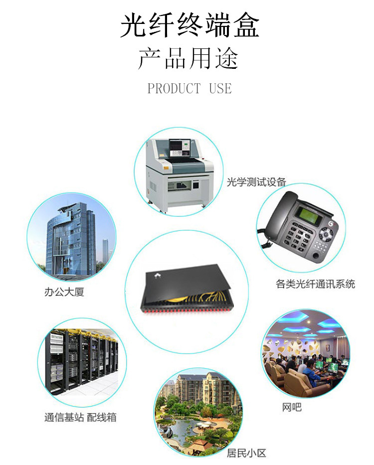 光纤终端盒是一条光缆的终接头, 它一头是尾纤,另一头是光缆,-般分为4口、8口、12口、 24口、48口相当于把一条光缆拆分成单条光纤的设备