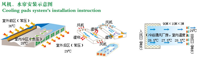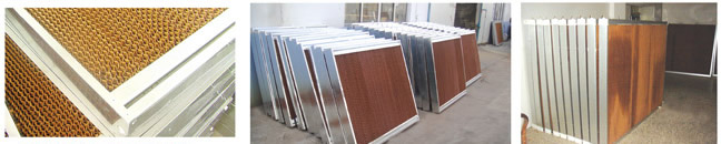Performance characteristics: The corrugated paper of the wet curtain is specially treated, with high structural strength and long service life; It has excellent osmotic water absorption, and can evenly drench the entire wet curtain wall. The specific three-dimensional spatial structure provides an excellent evaporation surface area for the heat exchange between water and air; The outer frame is available in aluminum alloy and galvanized sheet.