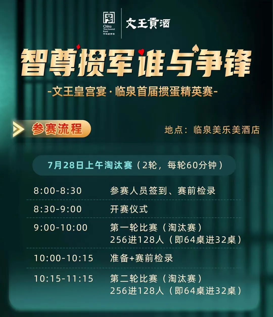 "智尊掼军 谁与争锋" 文王皇宫宴·临泉首届掼蛋精英赛
