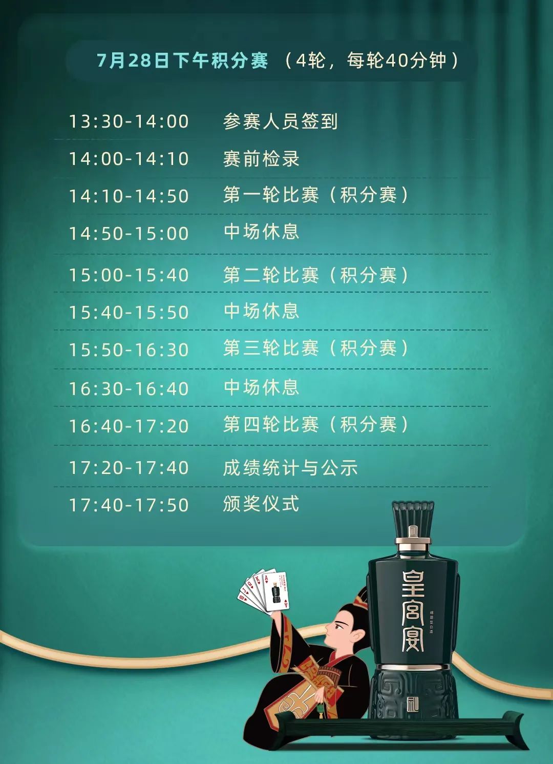 比赛时间:2024年7月28日(上午开幕式+淘汰赛,下午积分赛+颁奖仪式)