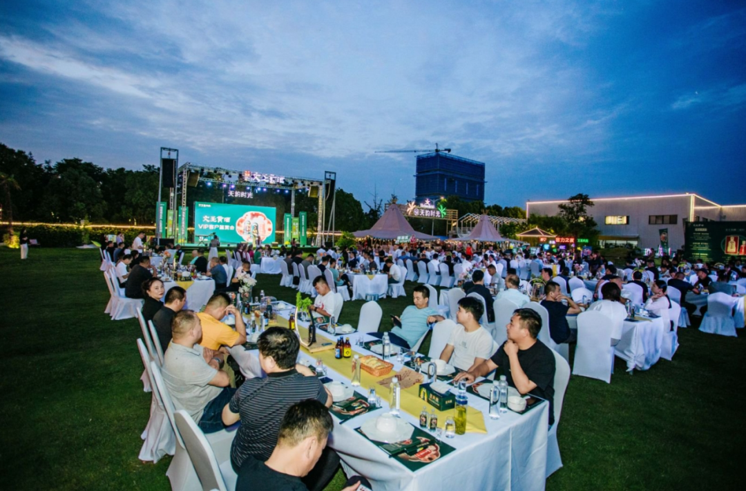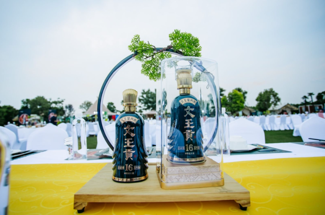 文王销售公司副总经理赵群府、天韵集团董事长肖天军、天韵集团总经理肖尧、文王酒业品牌总监马宗学、文王销售公司高端酒事业部总监赵兴祥、文王酒业品牌部副总监陈艳艳等近300位阜阳商务精英、文化名流及主流媒体代表齐聚一堂,在自然野趣与典雅格调交融的营地氛围中共品美酒、共同见证。