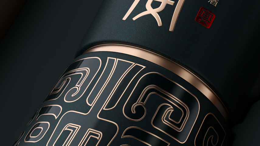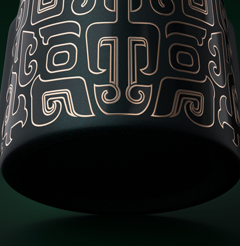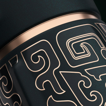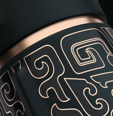 以礼御器,以中国樽为瓶型,以文王冠为瓶盖,以青铜饕餮为图腾,整个器型如同周朝天子,