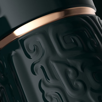 以礼御器,以中国樽为瓶型,以文王冠为瓶盖,以青铜饕餮为图腾,整个器型如同周朝天子,