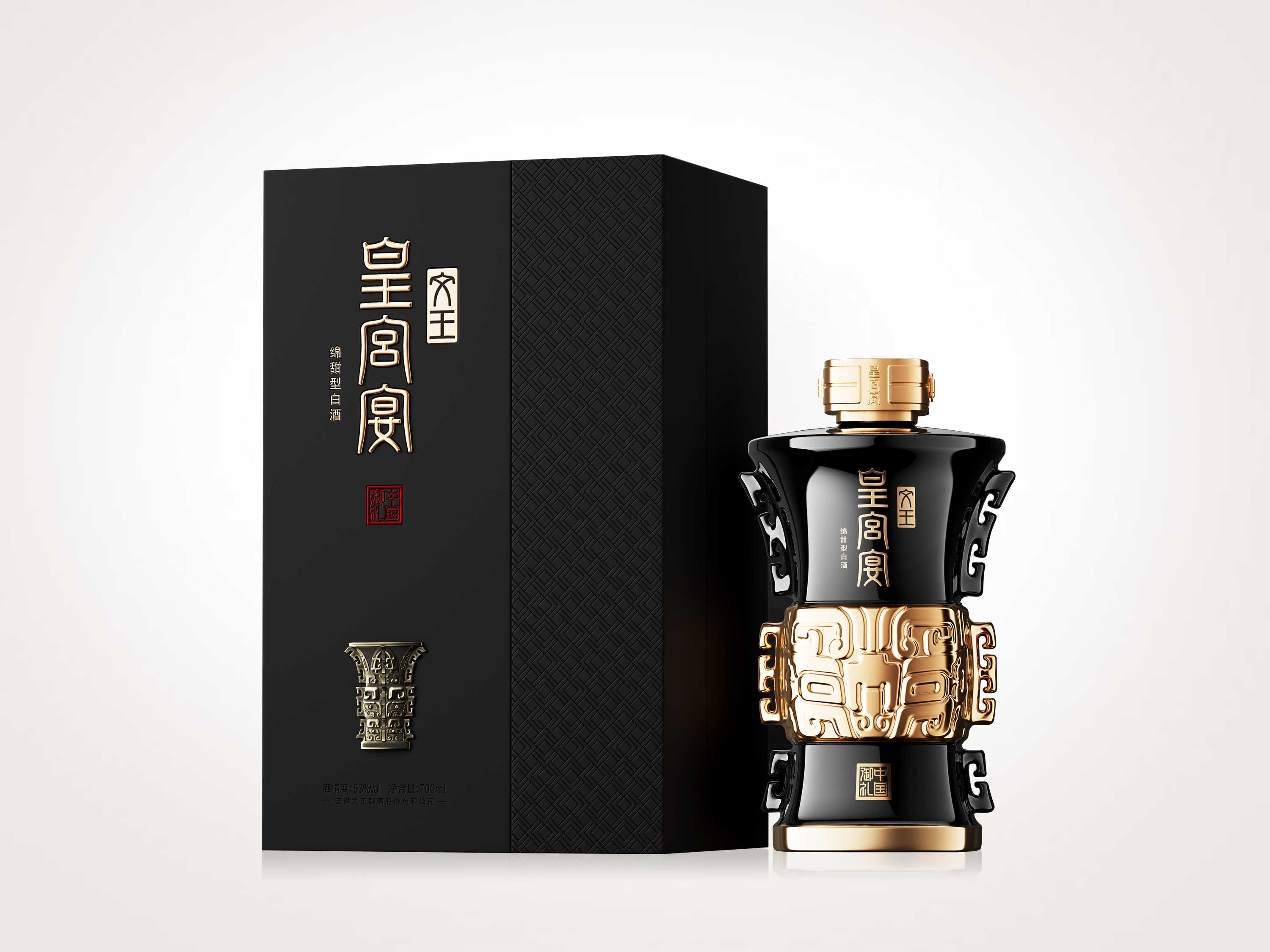 文王皇宫宴(中国御礼)以何尊为器型,尊贵黑釉为品相,饕餮纹为图腾,礼器玉琮为盖,工艺精美、造型雄奇。
