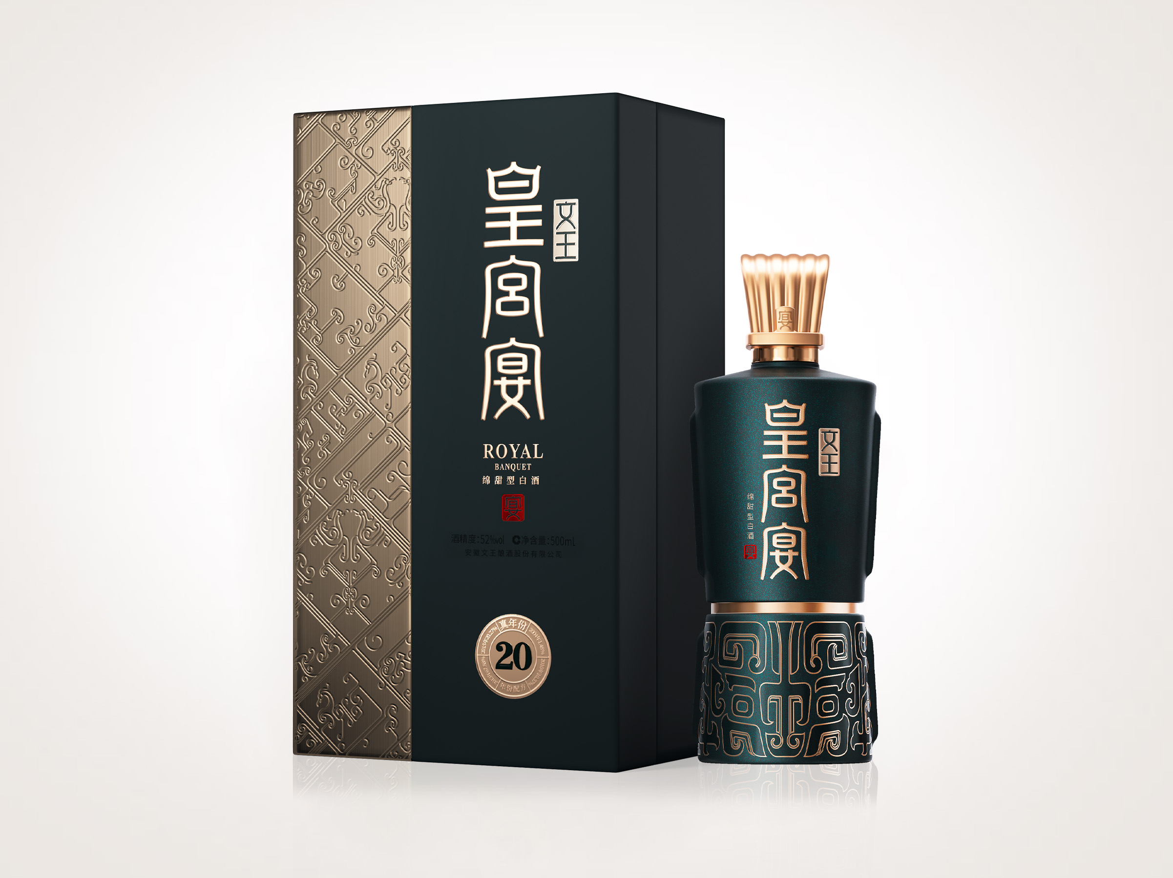 皇宫宴·盛宴大坛礼酒,以周文王时期的顶级酒器,复刻再设计;以有容乃大的器型,赋予秋酿丰收的喜悦;以王者夔龙纹,塑造高阶皇室品位。